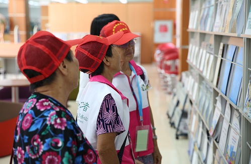 随后,长者们来到学习资源中心参观。大家惊叹图书馆环境的舒适,更惊讶于馆藏量之大。一些长者对各类报刊杂志爱不释手。