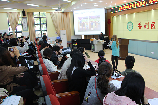 讲座中本地的教师也分享自己的课堂管理经验,向演讲嘉宾提出了实际的问题,并与嘉宾极积极展开了讨论。