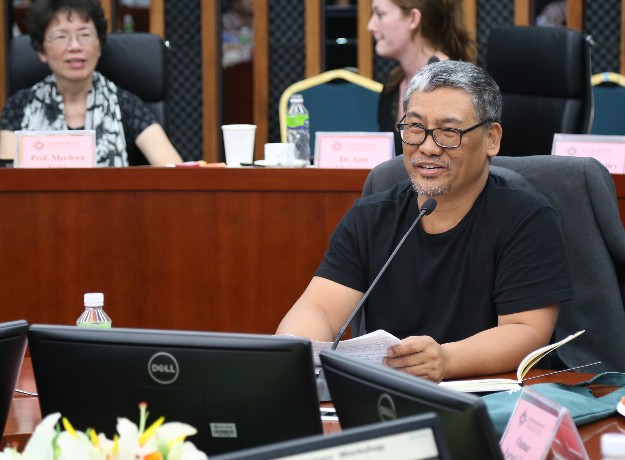 来访作家与UIC吴清辉校长、宋美璍院长、现当代英语语言文学课程主任Dr. Charles Lowe合影