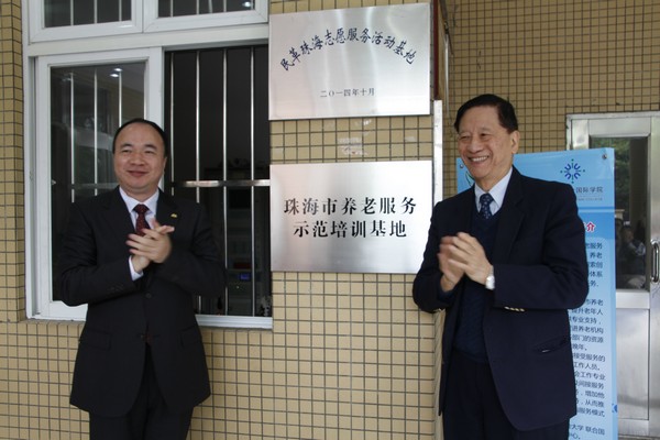 珠海市民政局罗新安局长(图左)和吴清辉校长为基地揭牌