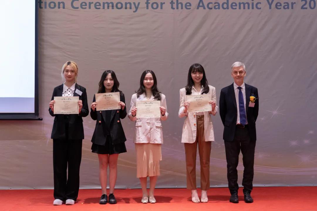 协理副校长(国际发展)、人文与社会科学学部院长贝力行教授为钟宇怡以及其他专业获奖者颁发院长推荐奖学金
