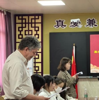 John Corbett教授在致辞中表示,夏湾中学提供的实习机会对于UIC英语教育专业的同学来说十分宝贵,理论知识固然重要,但成为一名优秀的青年教师必然要经历实践的过程。实际课堂经验对本专业同学的学习至关重要。在发言的最后,John Corbett教授代表UIC英语教育专业对夏湾中学的全体领导和老师表达了由衷的感谢,并希望双方可以在未来进一步互利共进,共创未来。