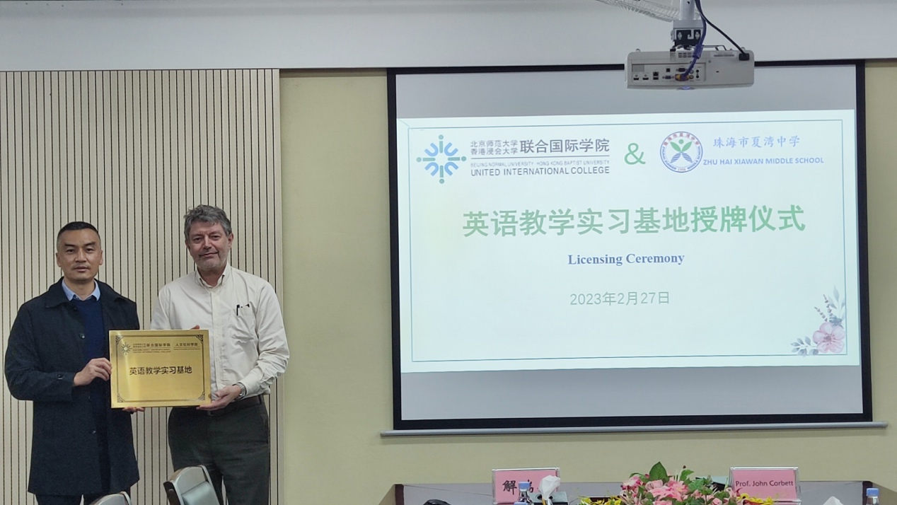 2023年2月27日下午,珠海市夏湾中学与北京师范大学-香港浸会大学联合国际学院(UIC)在夏湾中学完成共建英语教育专业实习基地的签约及挂牌仪式。