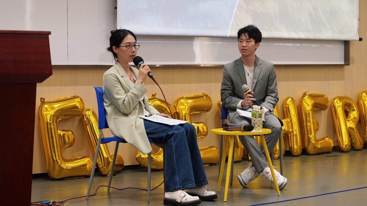 虽然未能来到现场,指导学生完成电子版杂志制作的Benjamin Barber教授也在视频中表达了对于杂志发布最衷心的祝愿与祝贺。此后,本期杂志的学生主编,来自19届EPC方向的陈思懿与陈灏元也与大家分享了杂志的制作过程与出版心得。