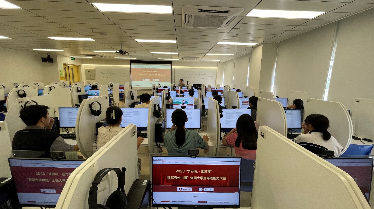 英语写作、阅读和笔译三个赛项的比赛于23日分别在T3-301电脑语音实验室举行,选手登录大赛官网进行答题。