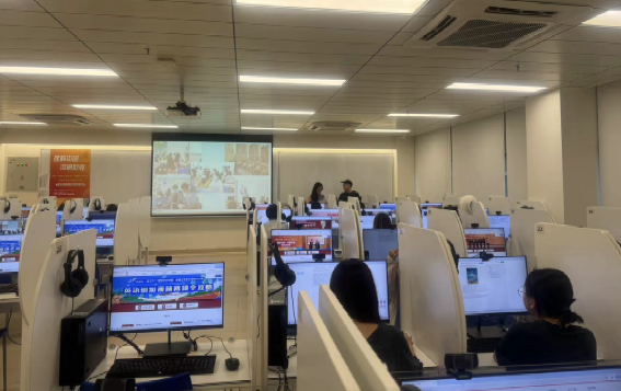 笔译校赛为线上举办的全国统一笔译赛项线上初赛,于9月21日在T3-301机房举行。选手们有序进入比赛现场,在监考老师讲完比赛规则和选手须知后,便开始全心投入比赛。
