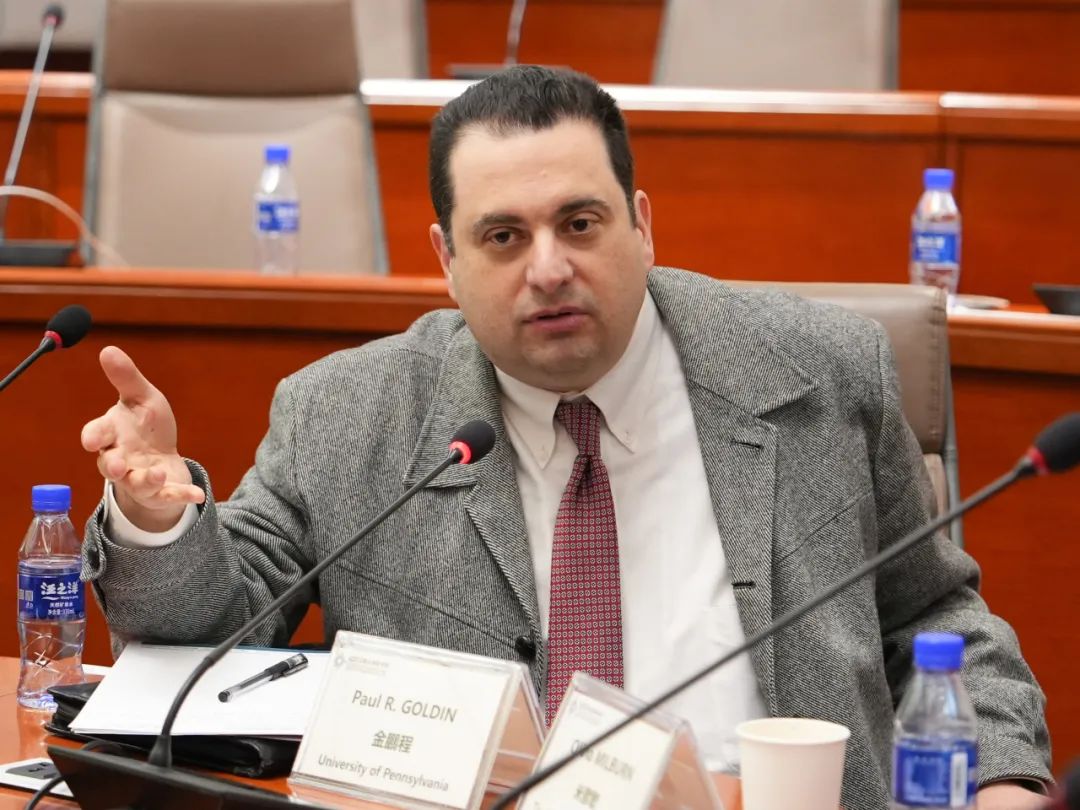 随后,宾夕法尼亚大学的汉学家金鹏程(Paul R. Goldin)教授做了大会主题演讲,题目为“秦国崛起的地理因素”。演讲谈到,战国时秦国的行政并非独一无二,魏、楚等国也有类似的变法措施,因此秦国的成功需要考虑其他独特原因,包括地理。秦国的地理优势之一是地处关外,可以避免本土作战,金教授用标记战国时战役发生地点的地图对此予以说明。另一项优势是对易守难攻的四川之征服,金教授通过与后世王朝战争的对比,说明四川的军事地理优势。