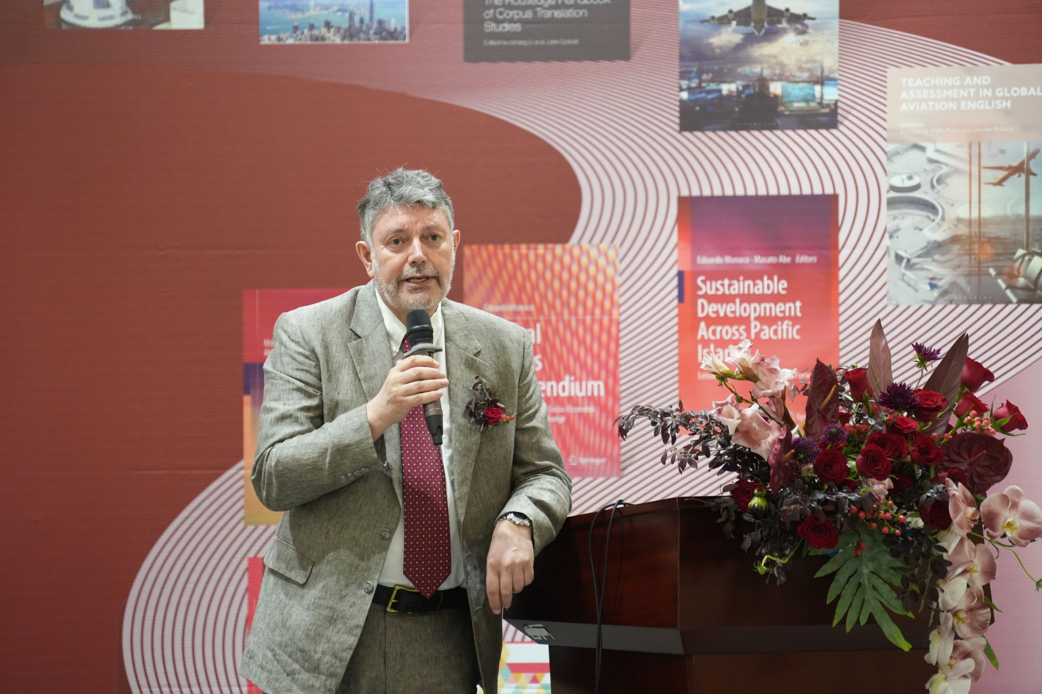 活动伊始,人文社科学院副院长(教学)John Corbett教授致开幕辞,回顾学院发展历程,展望跨学科研究的未来方向。