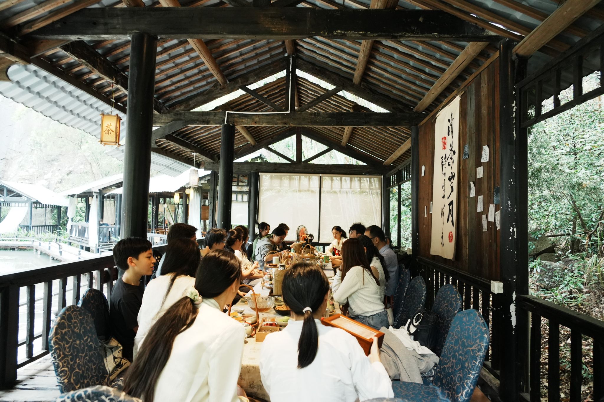 吟唱之余,黎子鹏教授、胡献皿女士更与北京师范大学全球化与文化发展战略研究中心特聘研究员大卫·巴拓识、北师港浸大通识教育学院叶佳颖副教授、北京师范大学高等研究院彭蓓讲师、香港三联书店朱卓詠女士、北师港浸大通识教育学院柯呈霖老师、北师港浸大传播系中华文化与国际传播专业李甜老师及来自各个专业的学生一道,围炉烹茶,促膝论道。来自英语语言文学专业的郁晴合与来自数据科学专业的谢雨臻同学带来了精彩的雅乐鼓乐表演。众人于清茗氤氲、书声乐声间畅谈,直至暮色渐起,青砖黛瓦亮起明灯,活动在温馨雅致的氛围中如期结束。