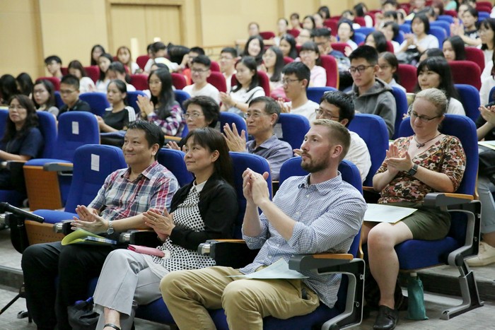 Britton教授还于9月25日带来了以 “Look, Listen, Think, Feel, Show, Tell…”为主题的讲座,向全校师生阐释他对戏剧的理解。两小时的讲座中,他从自身的执导、创作经验出发,以H(History) U(Universal) M(Mythology) A(Artistic Courage) N(Naturalism) I(Interior Truth) T(Tension) Y(Yearning)八个关键词展开叙述,同时穿插ELLS同学的戏剧表演帮助观众理解。