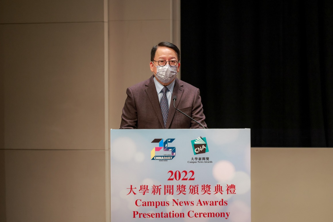 本次颁奖典礼由香港特别行政区政府政务司司长陈国基主礼,他表示,新闻奖是对来自海峡两岸暨港澳地区的新闻系同学学业成果的肯定,他希望新闻工作者肩负社会责任,传递正能量,继续讲好中国故事。