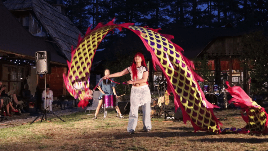 这场研学,仿佛是一堂“流动的课堂”。每一次对话、每一场落日、每一顿共餐,都是生活本身带来的学习机缘。学生们对周遭世界的感知愈发细腻,在繁杂中抓住了当下——无论是临时学习舞龙带领观众一起舞动,还是在乐队表演中即兴合奏中国民谣。“大家毫无拘束地共同创作,”临时加入乐队即兴表演长笛的来自媒体与传播学专业大三学生邱子懿说,“这是真正的灵魂共鸣。”艺术节还吸引了塞尔维亚国家电视台的关注。“接受采访时我意识到,我们不仅是学生,更是文化使者,”中华文化与国际传播专业大四学生李雨珊表示。Jocelyn教授在采访中提及,年轻人需要走出舒适区,与各国青年交流生活经验和思维方式。
