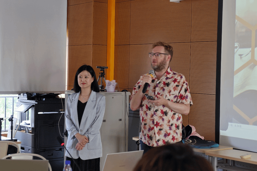 Dr. Jesse Owen Hearns-Branaman (右)主持讲座并介绍嘉宾周沫(左)