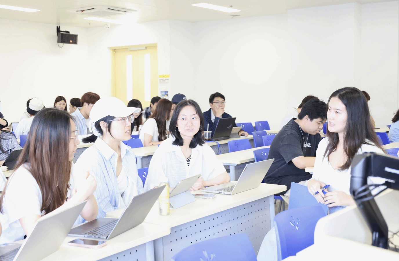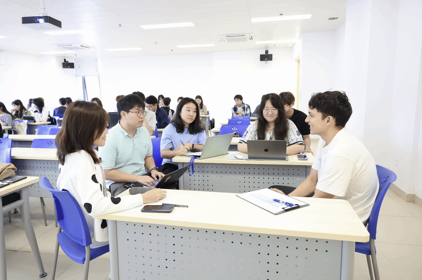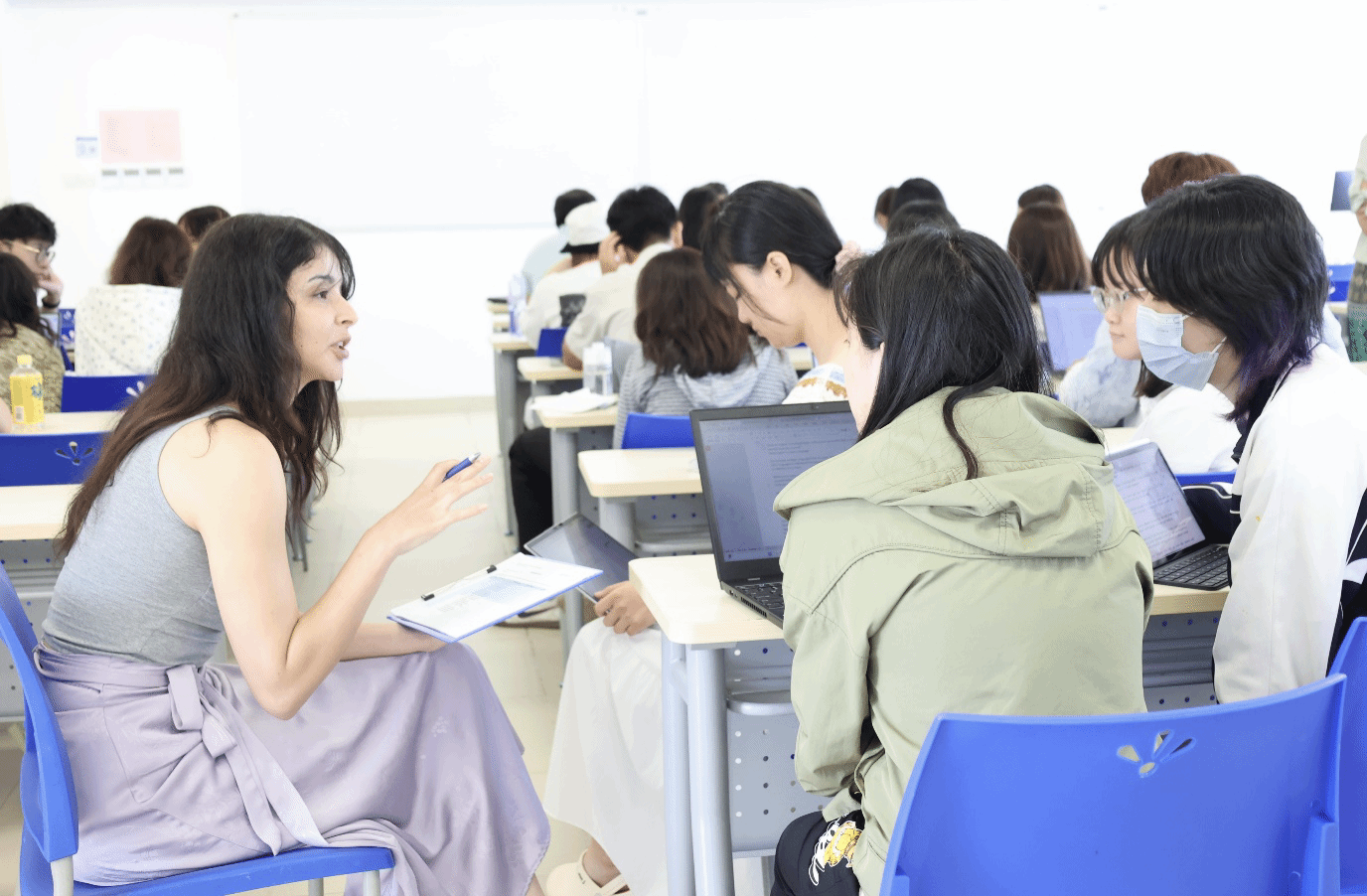 图5:四位外籍受访者齐聚台前,向全班同学分享反馈与跨文化访谈的实用建议。