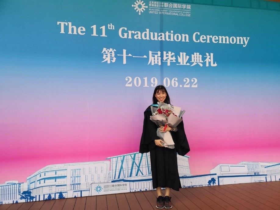 There have been many precious memories during my four-year college career at UIC, but if I were asked to name several of the most impressive shining points of UIC, I would nominate the immersive English-teaching environment and its vision of the Whole Person Education. UIC is a college that applies English as the primary instructing medium. In other words, to get a good grade at UIC, one must become a good English user at first. Thanks to the frequent English-exposure learning environment, my English skills have been greatly enhanced, which laid down a solid foundation for my postgraduate career. However, not until I graduated from UIC did I gradually found out that the gift from the alma mater was not merely about the improvement in language competence, but more about the confidence in cultural exchanges: I am not afraid of sharing views anymore. The vision of the Whole Person Education has also taught me a lot. I learned that learning should not be constrained in the academic field but should penetrate every aspect of life: to confront difficulties with positive and fearless spirits and be an open-minded lifelong learner. Time flies, an undergraduate from UIC has already become a postgraduate in CUHK, facing her brand-new adventures and challenges. Nonetheless, I have faith in myself, and such confidence is the best gift from my beloved UIC.