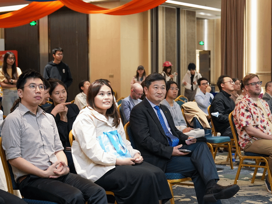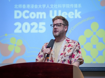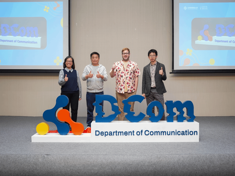 Prof. Steve Zhongshi GUO, Associate Dean for Research and Development of Faculty of Humanities and Social Sciences, and Dr. Jesse Owen Hearns-Branaman, Head of the Department of Communication, made the opening speech. With the unveiling from the guests, the new logo of DCom officially met with the audience. The logo’s three primary colors are drawn from the three programmes: the yellow of CCGC, the blue of MCOM, and the orange of PRA. They intertwine to form DCom’s visual identity, symbolizing collaboration as the spirit of DCom.