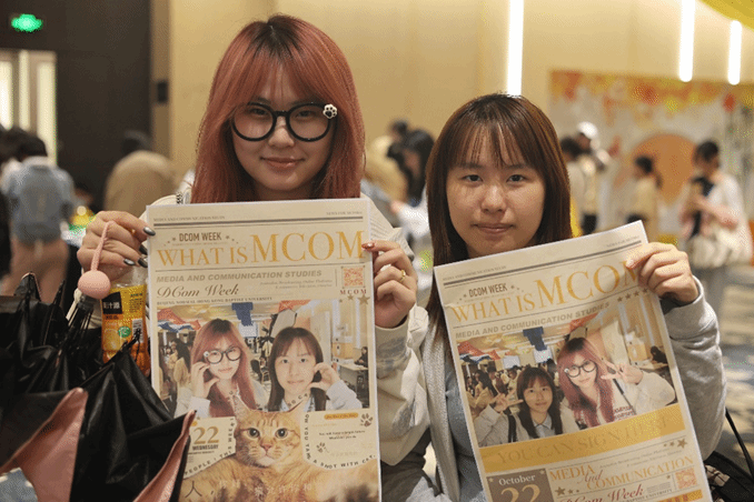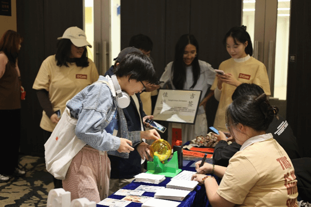The carnival on the opening ceremony featured a variety of interactive booths. PRA booth centered on creative expression, with installations such as the “Loading the Future” ball-rolling game and the “PRA Studio,” allowing participants to experience the imaginative side of public relations and advertising field. The MCOM booth combined learning and entertainment: the most popular newspaper photo booth, a green-screen news anchor simulator that visitors could have a taste of TV Newsroom, and the “Inspiration Tree,” which showcased standout MCOM student project topics. The CCGC booth emphasized cultural heritage through activities like Pitch-pot Game and Collage Poetry, enabling participants to engage with traditional Chinese arts in enjoyable activities.
