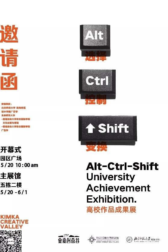 5月20日上午10点,由金嘉创意谷举办的以“Alt- Ctrl- Shift 选择 控制 变换”为主题的高校联合作品成果展开幕式在创意谷园区广场巨幅壁画前隆重举行,为本次为期13天的成果展正式拉开了帷幕。本次参展单位包括北京师范大学-香港浸会大学联合国际学院(简称UIC)广告学专业,文化创意与管理专业,以及北京师范大学珠海校区设计学院广告学系。