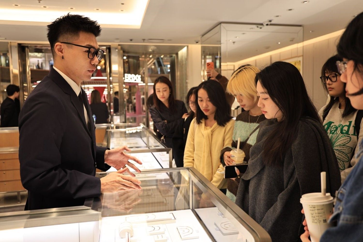 (蒂芙尼港汇恒隆店店长向学生介绍品牌理念)