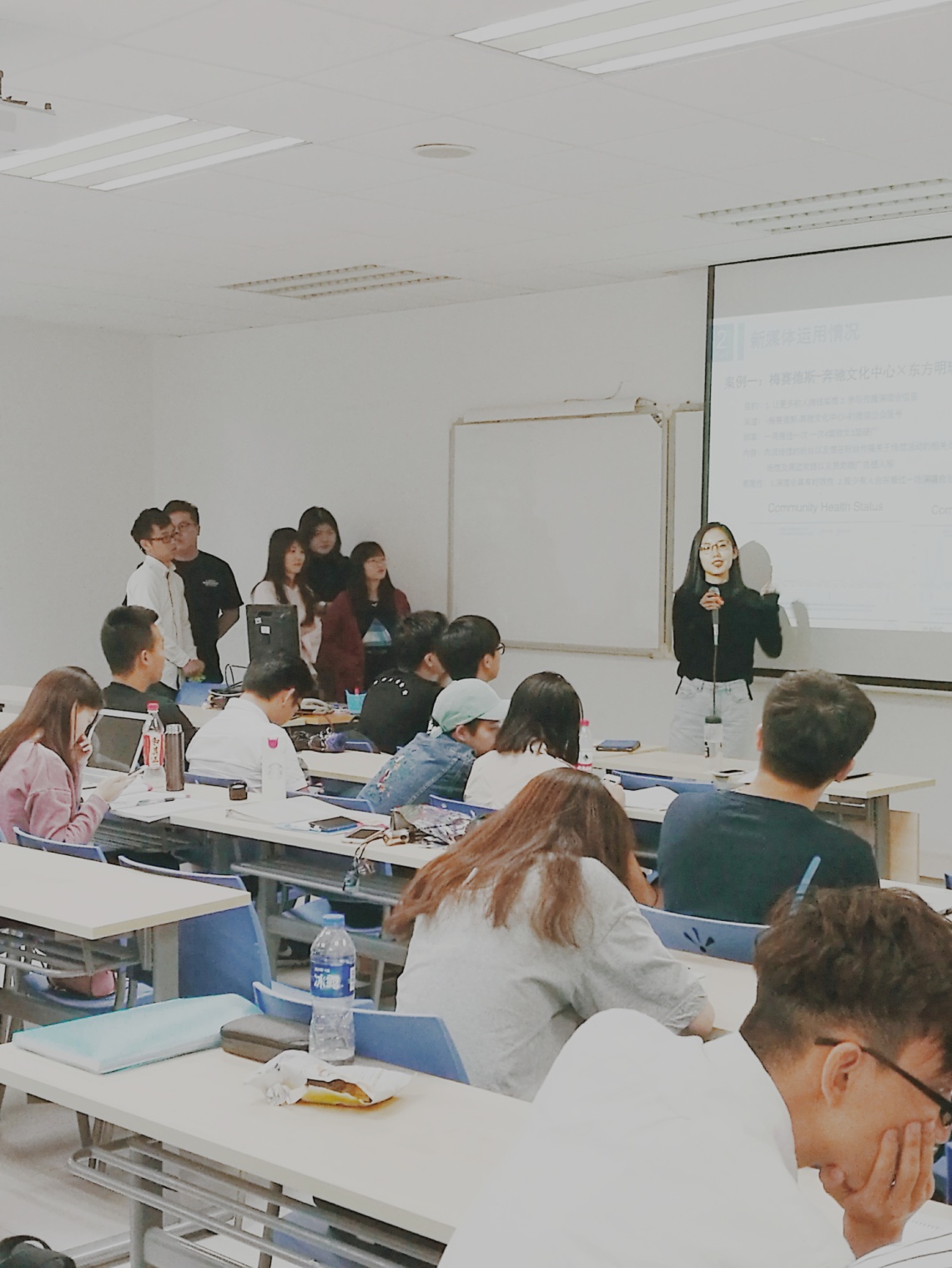今年,学长学姐们主要通过新媒体团体工作流程→新媒体运用状况→案例介绍→忠告与建议这一流程给学弟学妹们带来了一场干货满满的实习经验分享会。