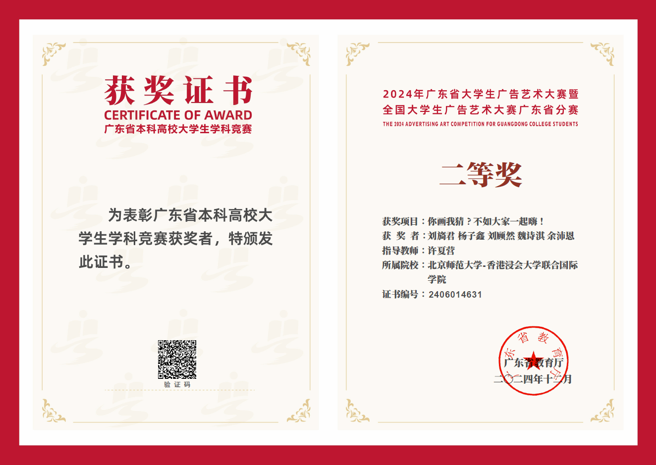 Award Name 奖项名称: National Advertising Art Design Competition For College Students, Guangdong Division 全国大学生广告艺术大赛广东省赛区