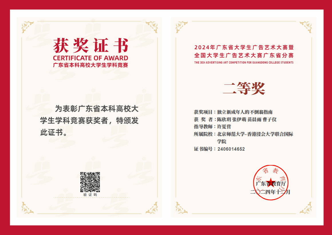 Award Name 奖项名称: National Advertising Art Design Competition For College Students, Guangdong Division 全国大学生广告艺术大赛广东省赛区