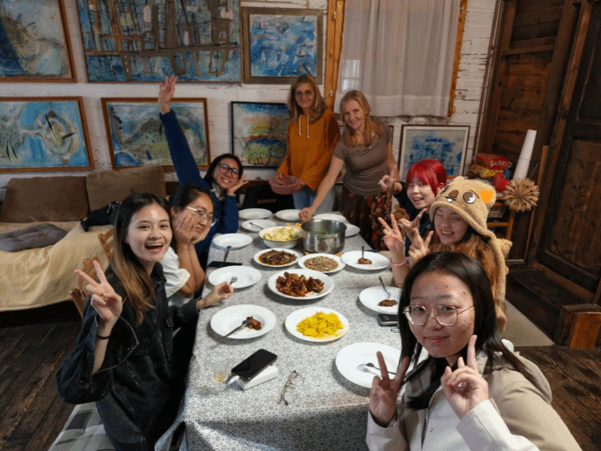 BNBU students cooked a Chinese meal to share with their host Aleksandra KOVACEVIC (standing left)