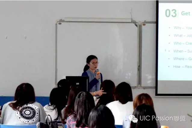 First, Yingzhi Liu, one of the best public relations companies in the world, interned in Edelman Public Relations Worldwide Co., Ltd. She shared her unique interview experience and interview skills with students.