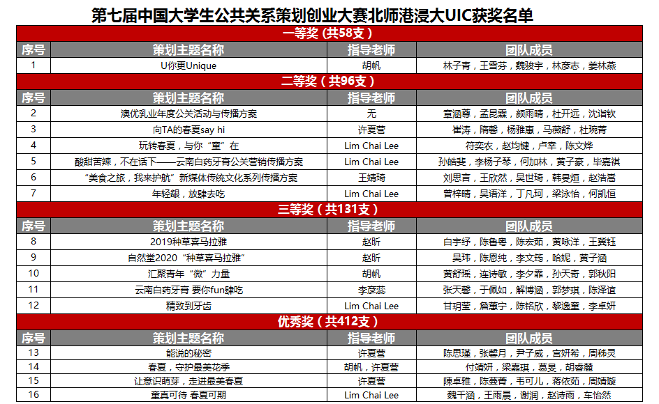 UIC winners’list of the 7th China University Students PR Plan Contest